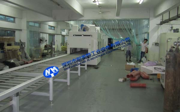 5、進料區(qū)長4400mm,出料區(qū)長9000mm,UV區(qū)長3600mm,絲印區(qū)8000mm;