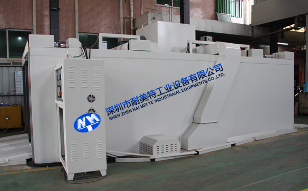 2、外形尺寸:寬4700*高2850*深13900mm,箱體內(nèi)可同時(shí)平排進(jìn)三臺(tái)推車,烘烤時(shí)間可獨(dú)立設(shè)置(見附圖);上料區(qū)長(zhǎng)1500mm,設(shè)有上料斜坡,便于推車進(jìn)入緩沖區(qū);兩端緩沖區(qū)各長(zhǎng)1700mm,各設(shè)有升降平臺(tái),便于推車進(jìn)出烘烤,爐蓋上加裝0.75KW高溫抽風(fēng)風(fēng)機(jī);烘干區(qū)長(zhǎng)7620mm,烘干區(qū)前后裝有隔熱卷閘門,加裝感應(yīng)器,底部設(shè)有傳送鏈條;下料區(qū)長(zhǎng)1500mm, 加裝斜坡 ,以便推車出料。