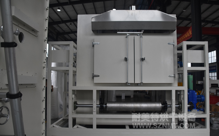 4、烘干部分總長(zhǎng) 50000m,分1段,進(jìn)出料端2500mm,中間9段每長(zhǎng)5000mm,爐體前后裝有急停開(kāi)關(guān)。